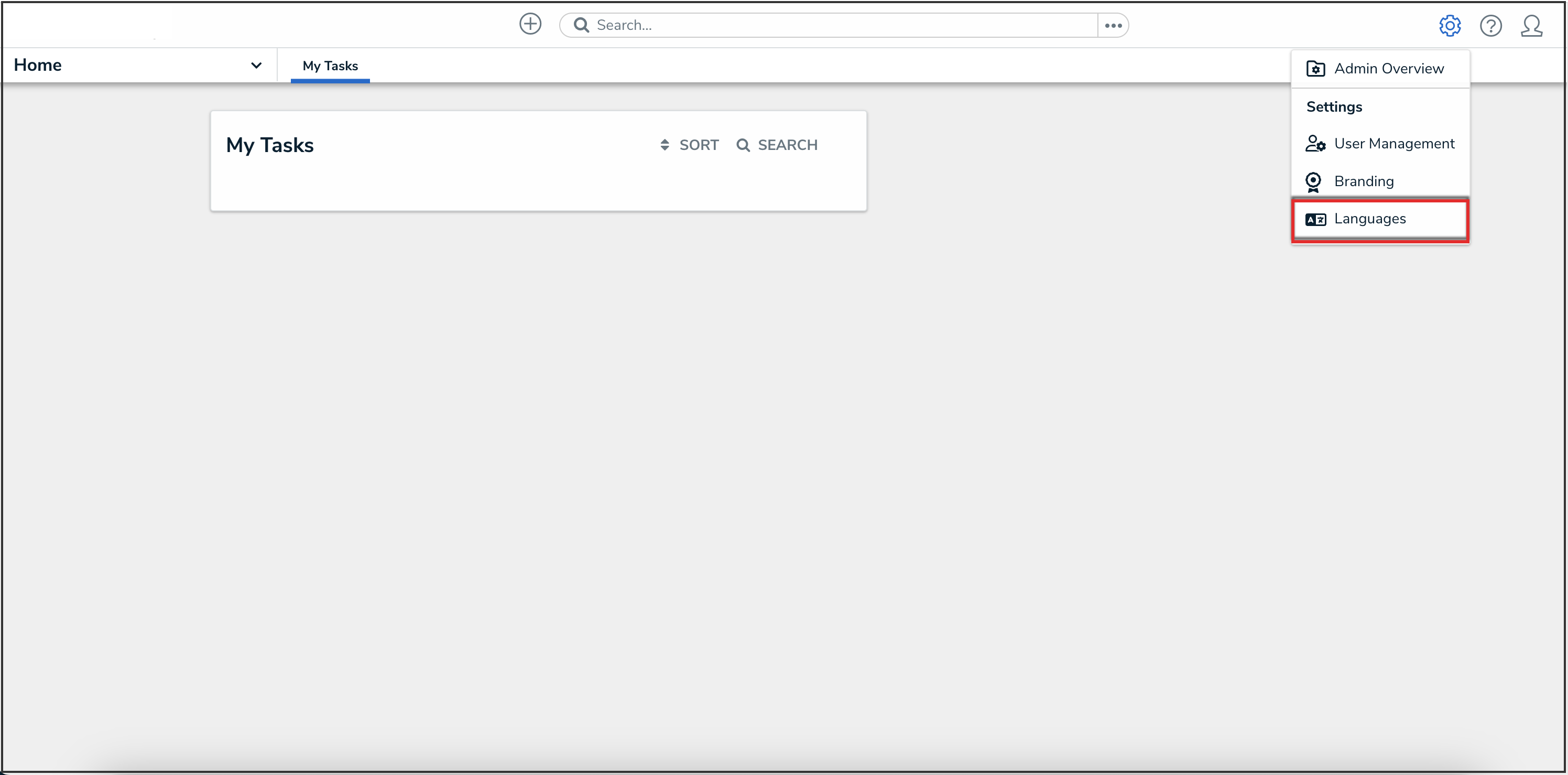 - From the Languages screen, click the Add New Language field and select a language from the dropdown menu.