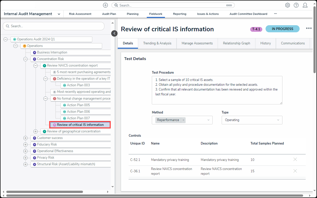 Please refer to the Final Test Review as an Internal Audit Lead article for further information on finalizing a test review.
