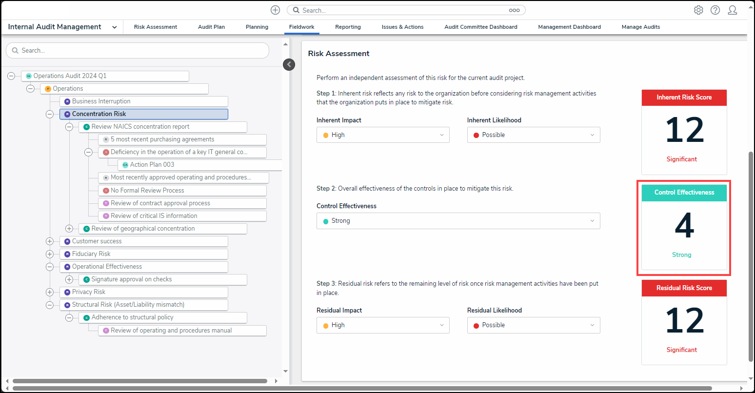 - The Control Effectiveness Score card will appear to the right of the Control Effectiveness field.