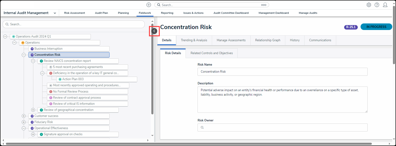 - From the Audit Project Overview screen, click on the Expand icon on the Navigation Tree to expand the nodes until you find the risk.