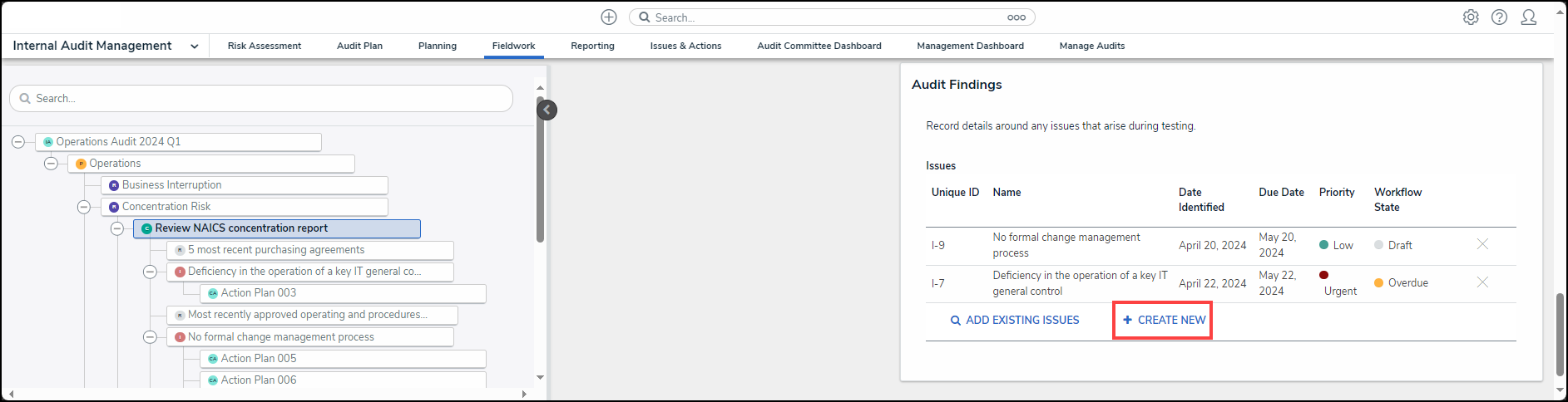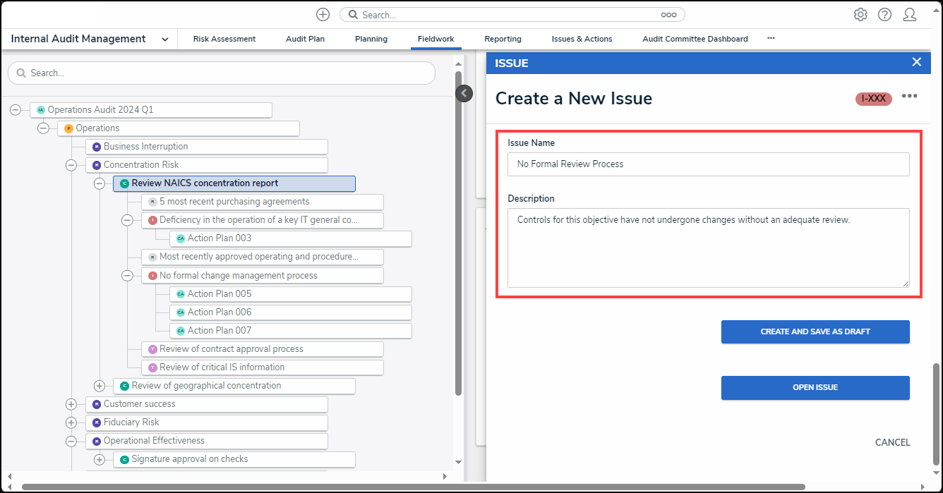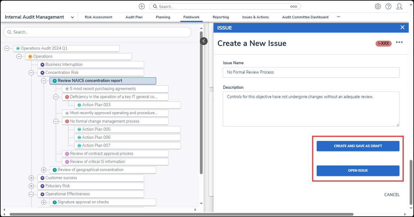 A Member of the Internal Audit Team will review an Internal Audit Project's Controls for Issues and track potential problems that may cause an Issue and impede the completion of the Internal Audit Assessment.
