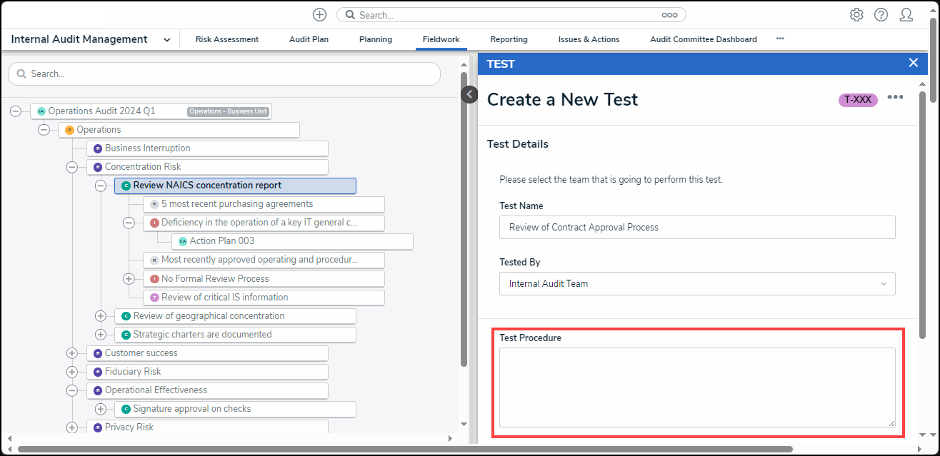 Please refer to the Final Test Review as an Internal Audit Lead article for further information on reviewing a test.