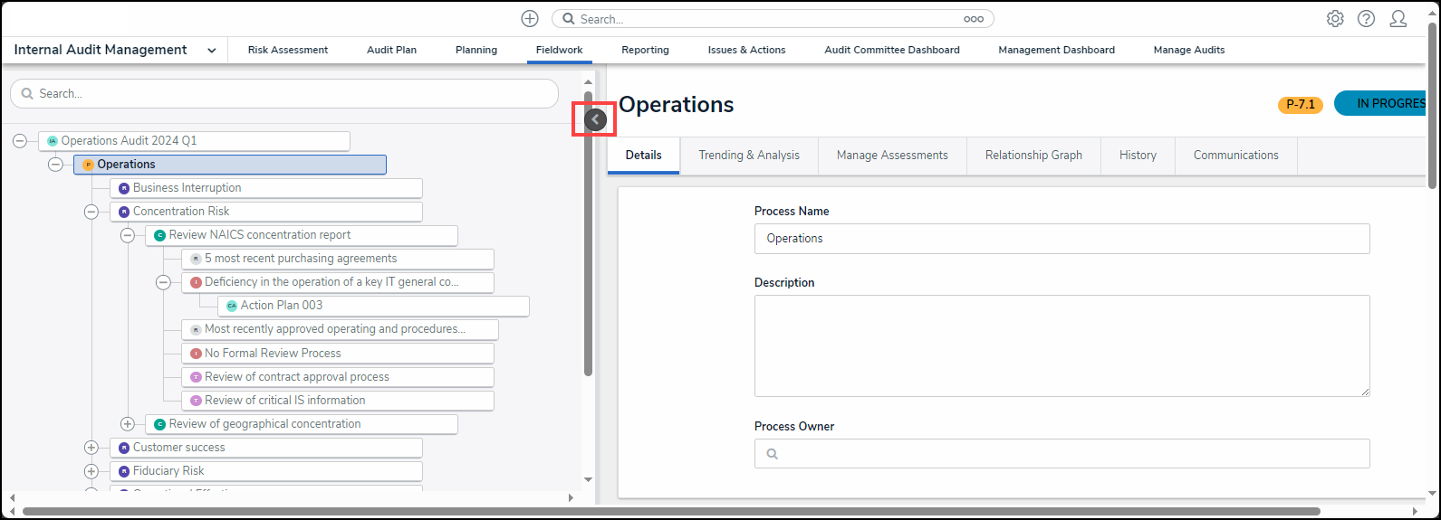 - From the Audit Project Overview screen, click on the Expand icon on the Navigation Tree to expand the nodes until you find the control.