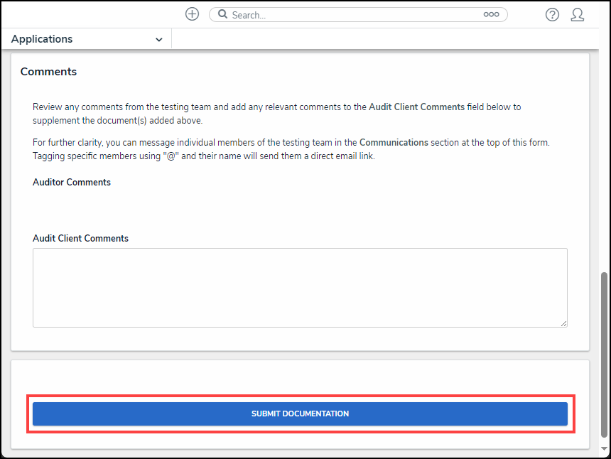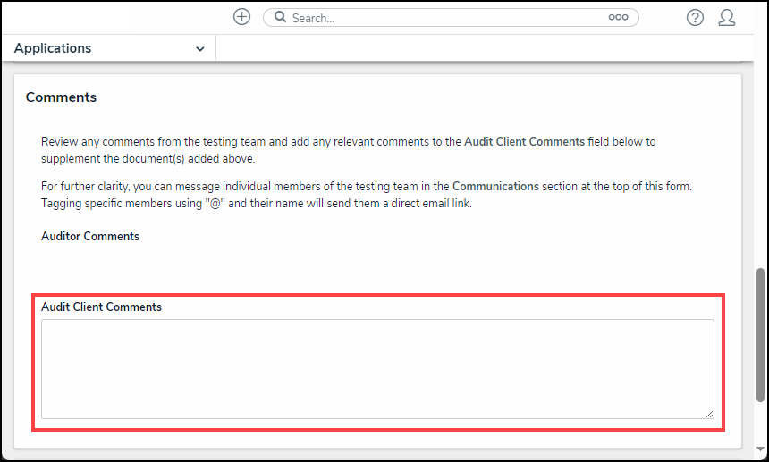 - Enter any additional information or comments for the auditor in the Audit Client Comments field.
