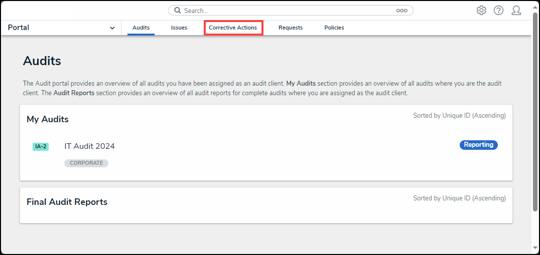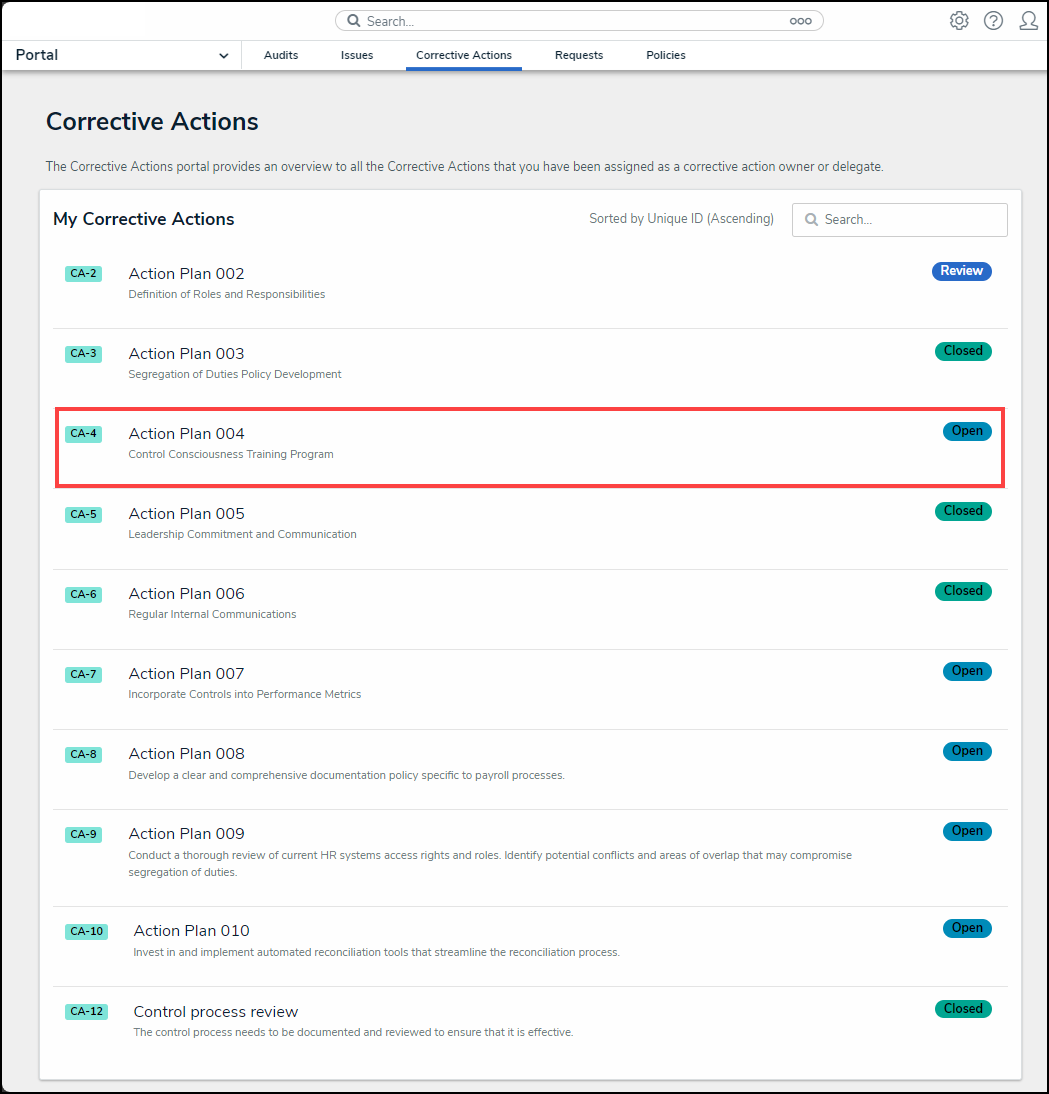 - From the Corrective Actions screen, click on an open corrective action from the My Corrective Actions section.