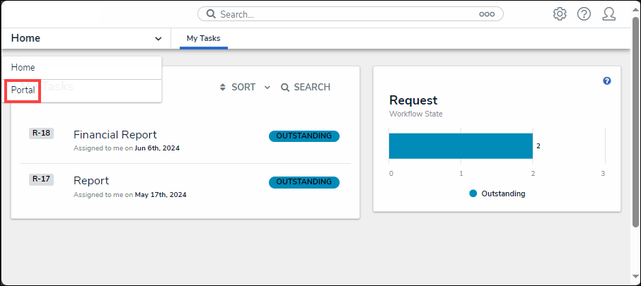 - From the Home screen, click the Home dropdown and select the Portal link.