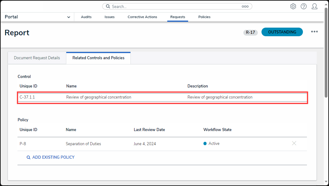 Related Controls and Policies Tab