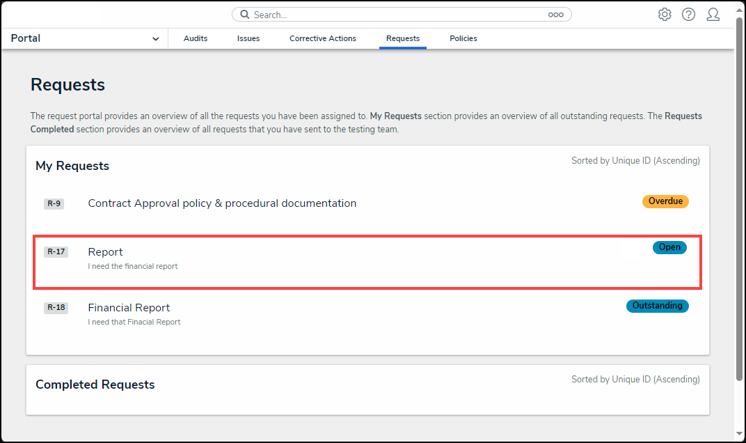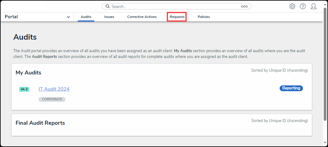 - From the Audits screen, click on the Requests tab.