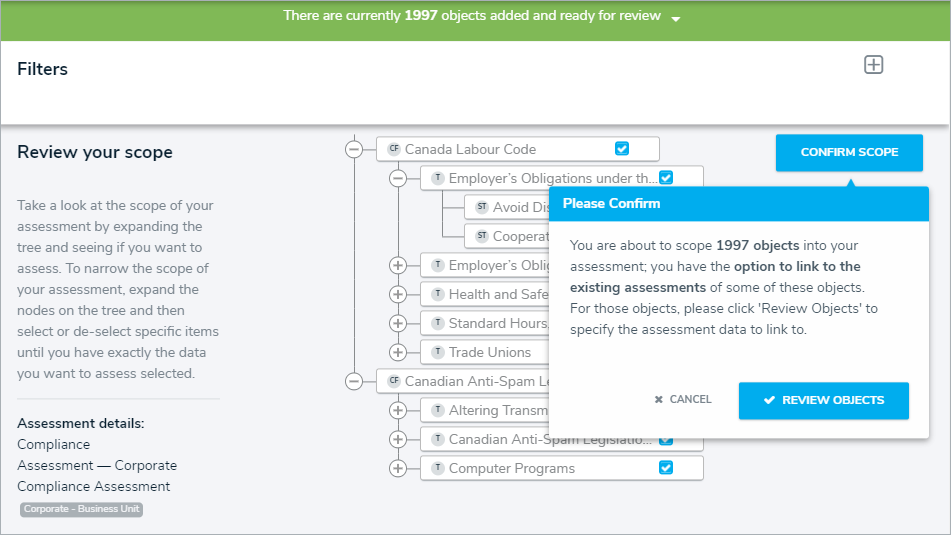 - Click Confirm Scope, then click Review Objects to decide whether to display the Review Objects page.