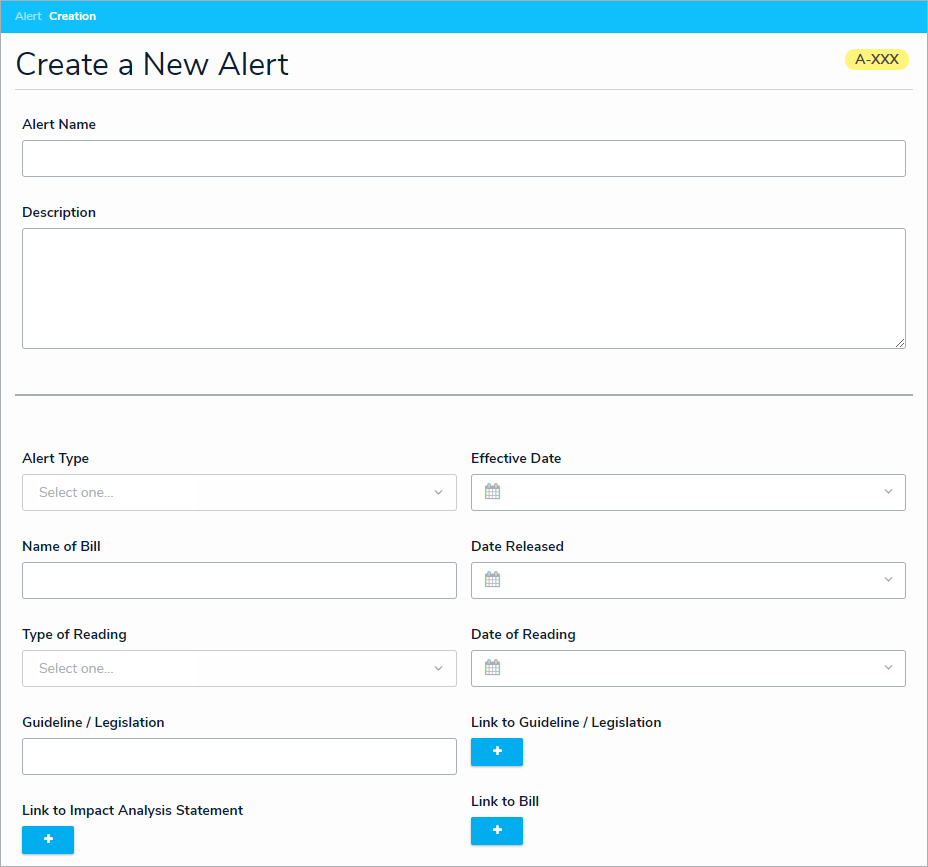 Optional: If applicable, type the name of the Guideline or Legislation this alert applies to in the Guideline / Legislation field.