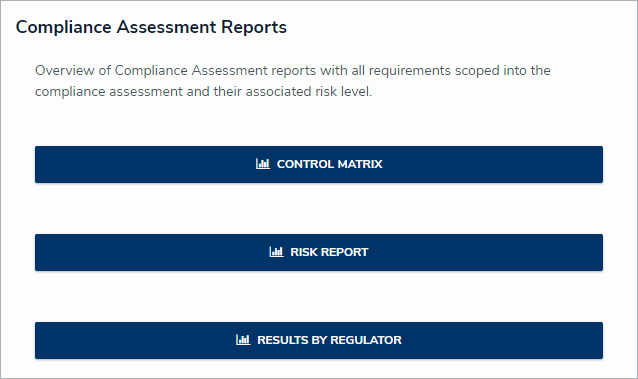 Control Matrix: Displays an overview of all requirements and controls attached to the assessment.