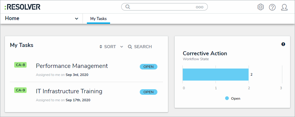 Log into a user account from the Corrective Action Owner & Delegate user group to open the My Tasks page.