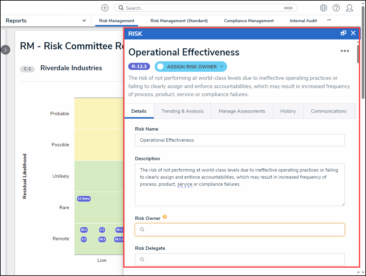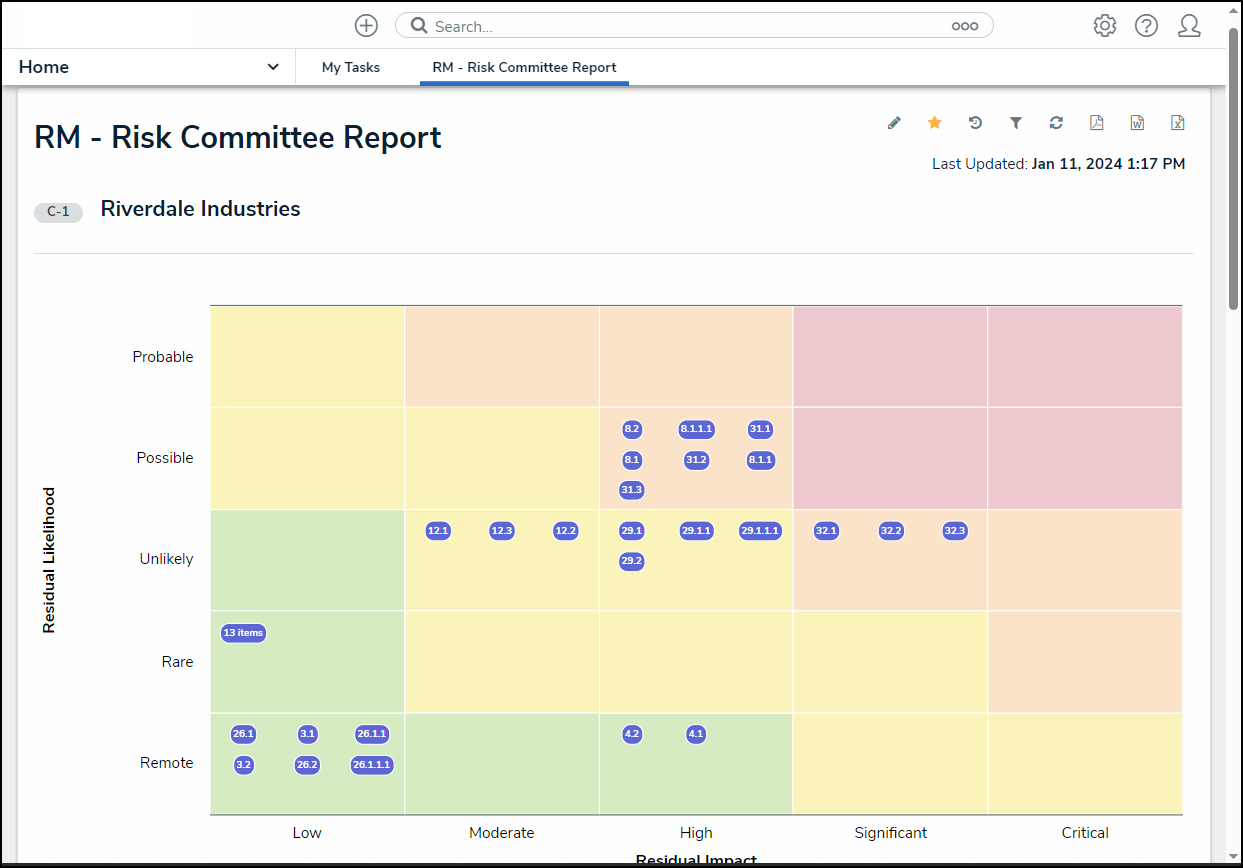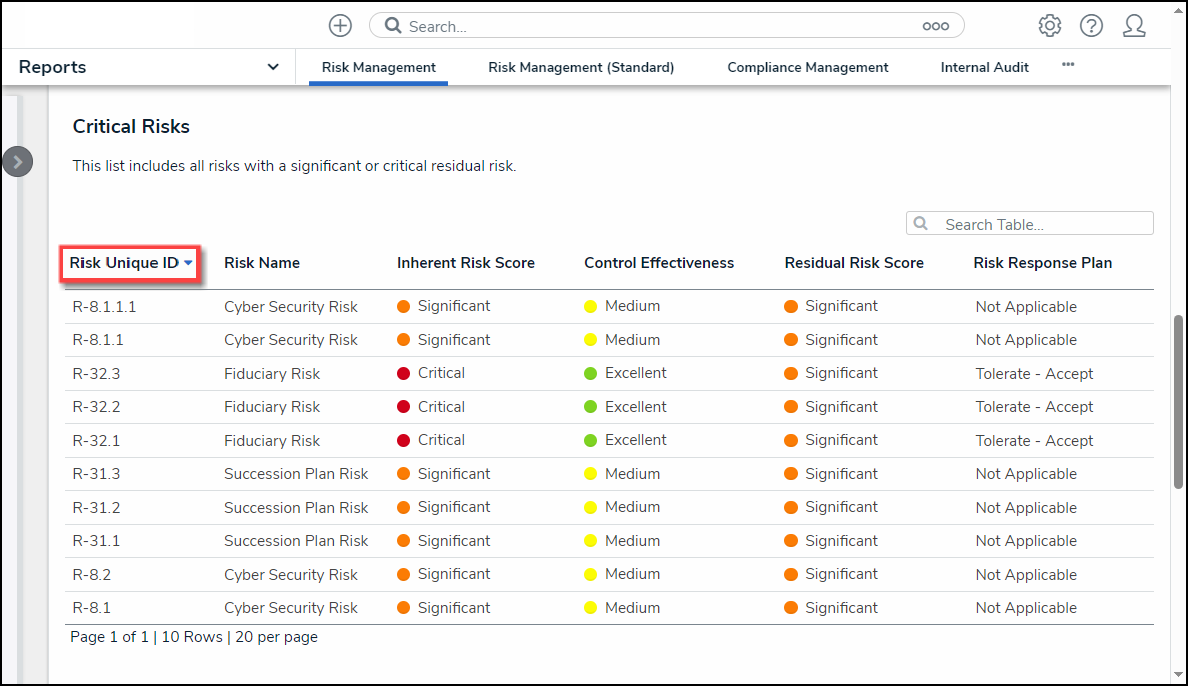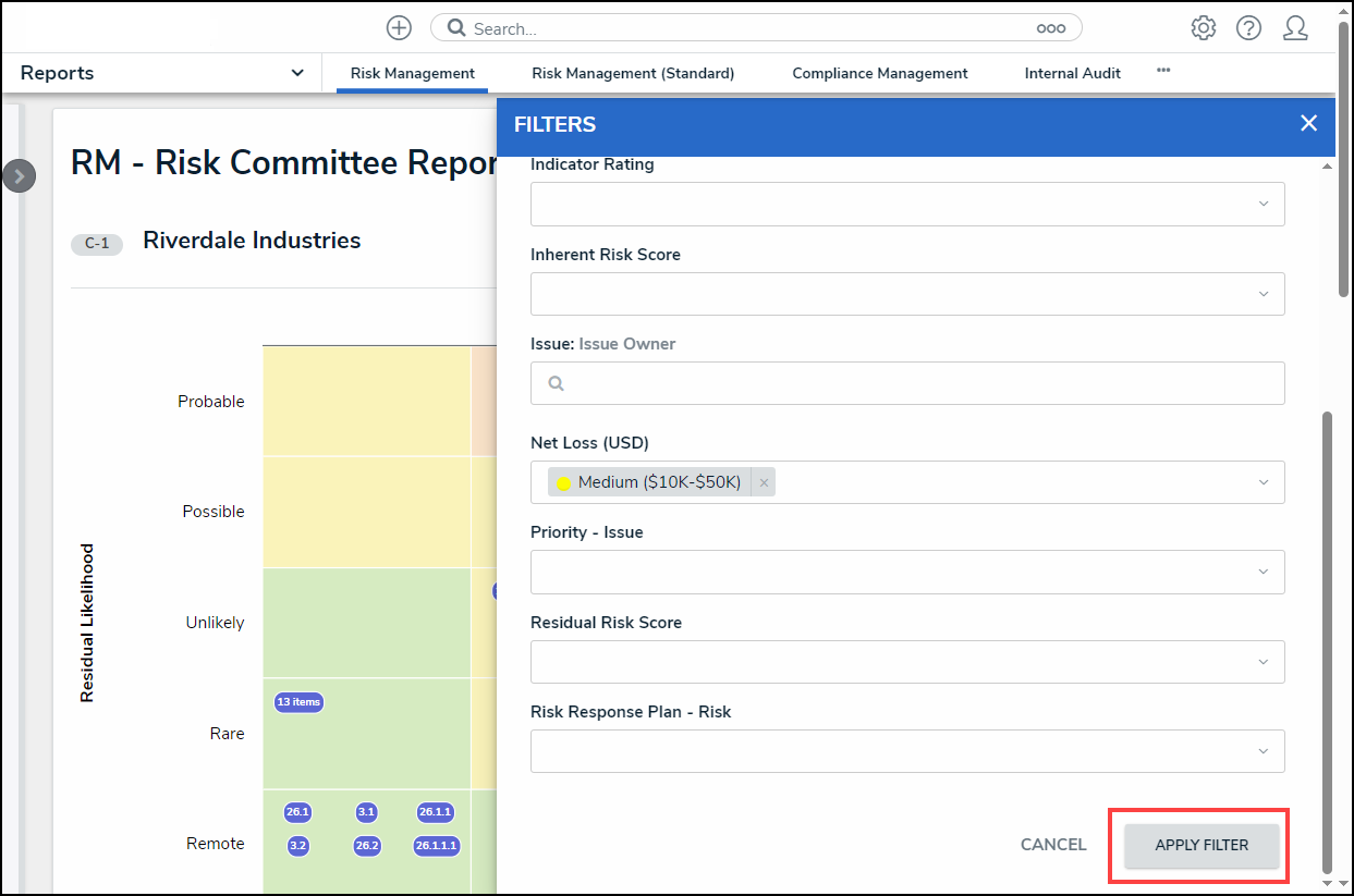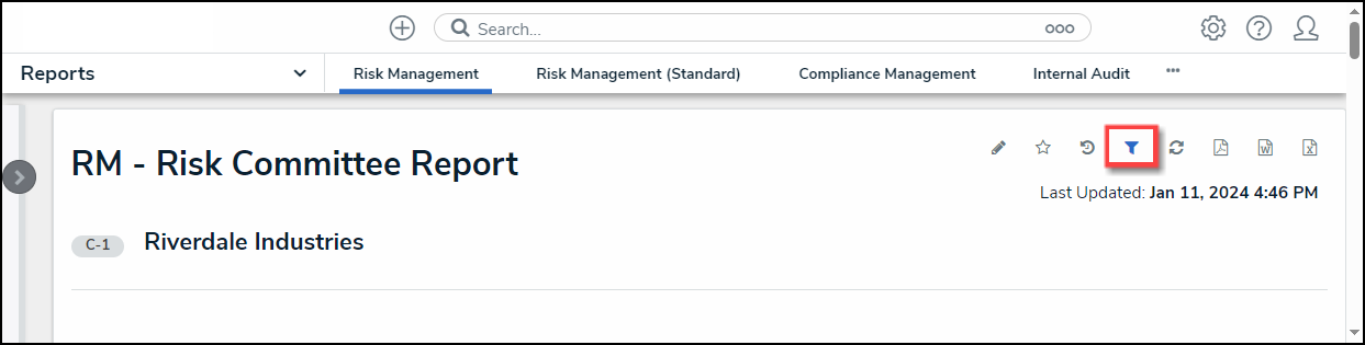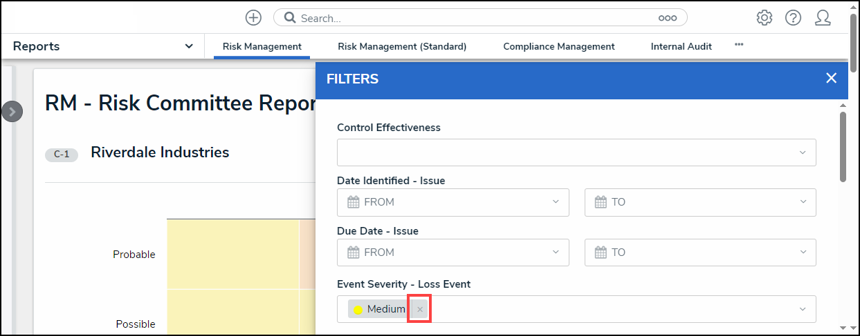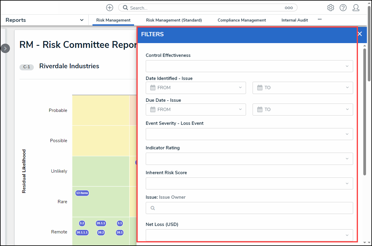 - Relationship/Reference: Allows a user to filter table data by one or more object type relationship or references. For example, selecting the Risk 1 object type in this filter will also display all the Control objects that Risk 1 appears on through a relationship.