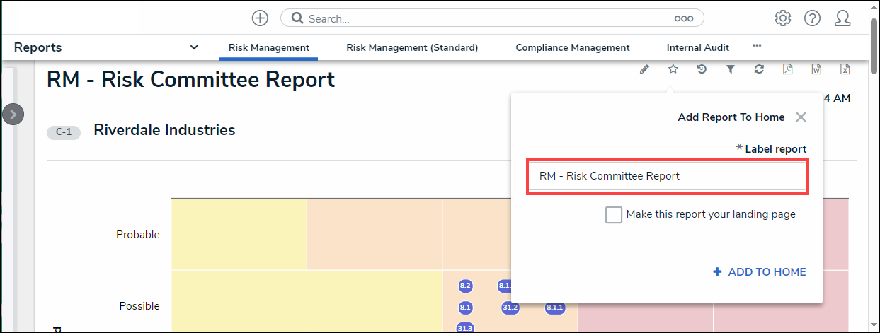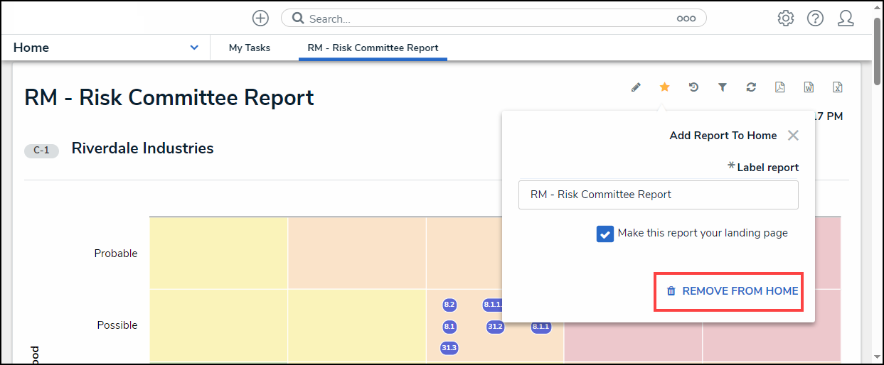 - Click the + Add to Home link to add the report to your My Task list or to add the report as the new Home screen.
