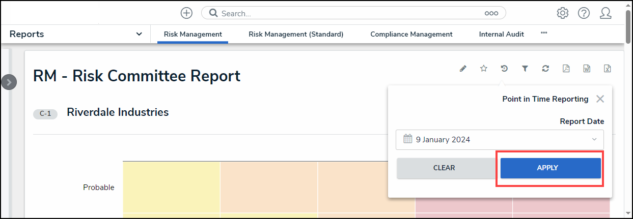 Note: If Point in Time Reporting has not been enabled for this report, the Historical Data icon will not be visible. |
