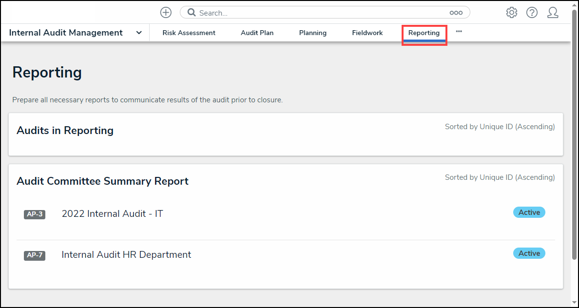 - Click the Search icon and enter a keyword to narrow the data results listed within the table.
