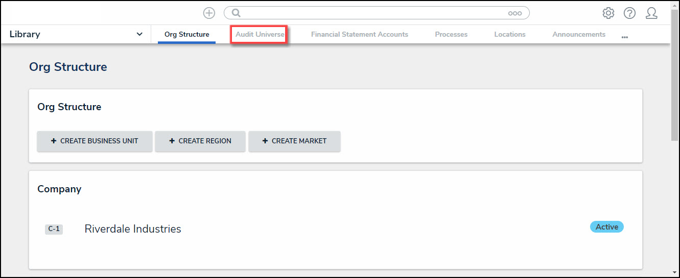 - From the Org Structure screen, click the Audit Universe tab.