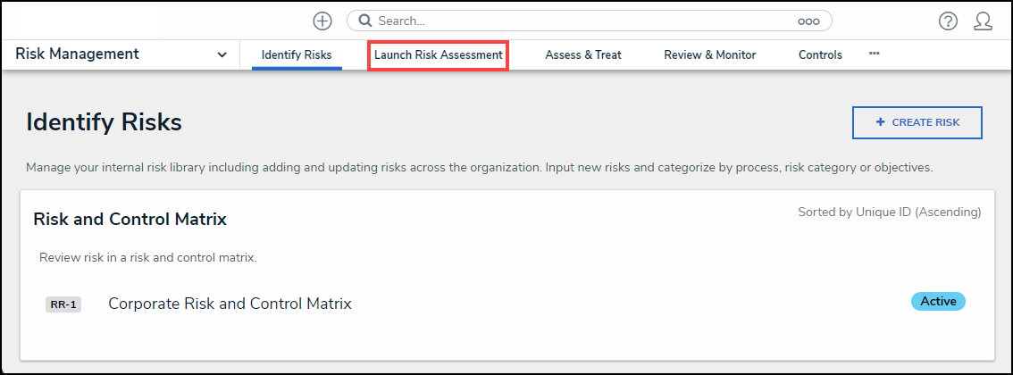 - From the Identify Risk screen click the Launch Risk Assessment tab.