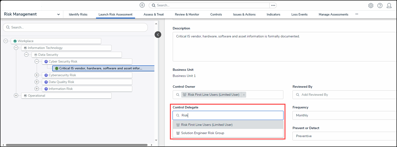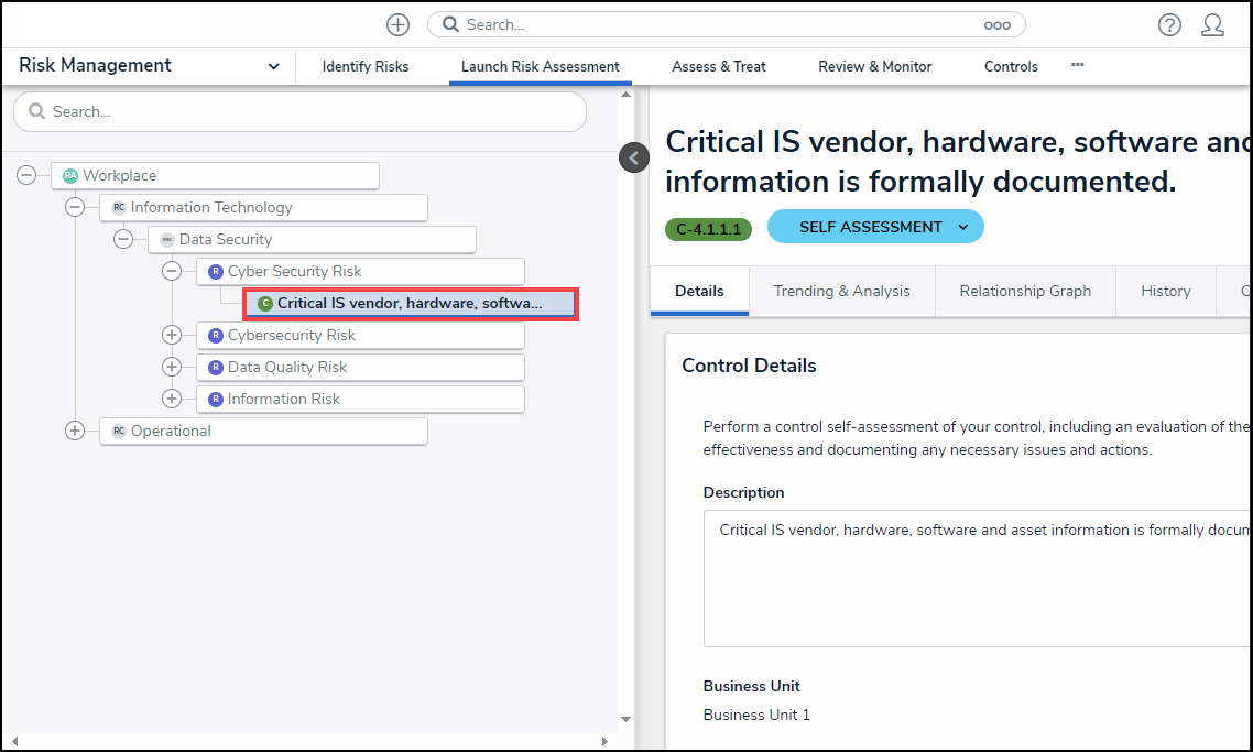 - Click on a Control node under the expanded Risk node.