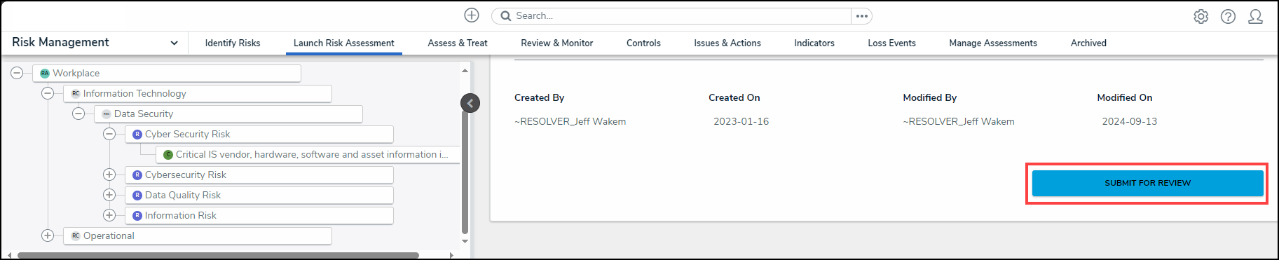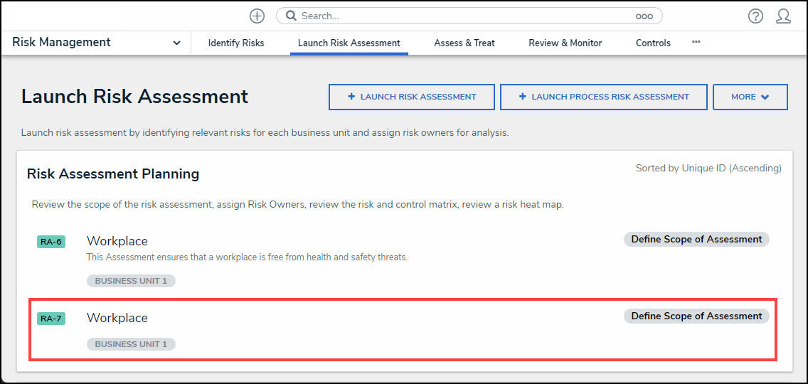 - From the Identify Risk screen click the Launch Risk Assessment tab.