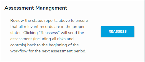 Click Reassess. The assessment will return to the Define Scope of Assessment state and risks and controls in the Monitoring state will return to the Assign Risk Owner state.