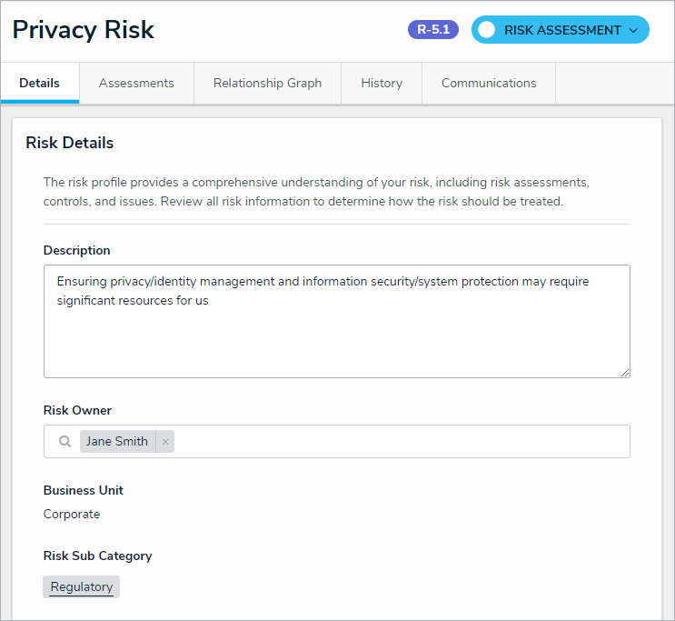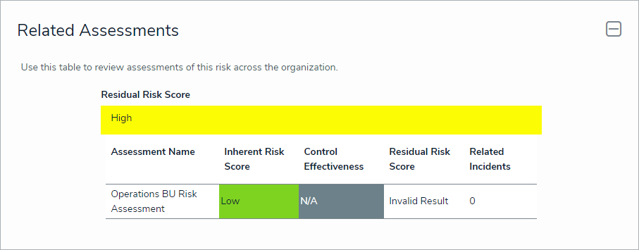 - Optional: Expand the Related Assessments section to view the assessments related to the risk.
