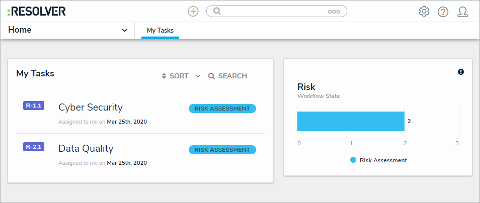 Risk Owners and their delegates are responsible for assessing risks and ensuring that they are properly mitigated by attaching controls, Key Risk Indicators (KRIs), and issues. Once users in the group have completed their tasks, the risks are then sent to the Risk Team for review. All assigned risks appear on the My Tasks page.