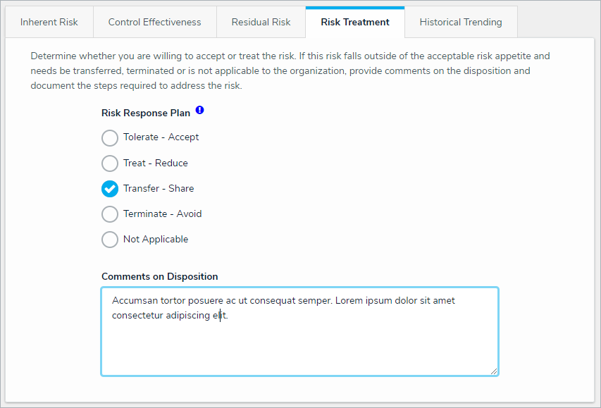 Select one of these treatment options in the Risk Response Plan dropdown: