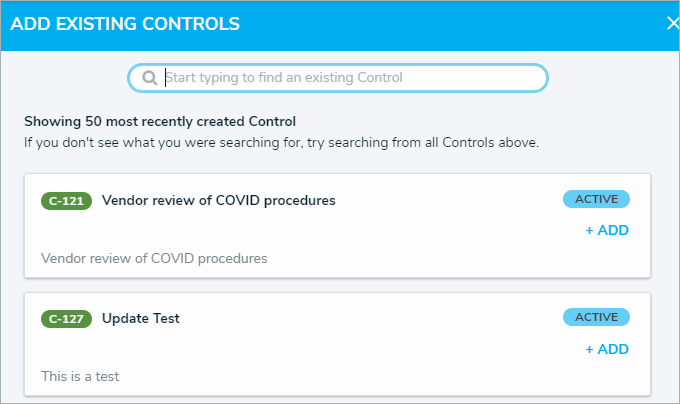 - Click Add Existing Controls and begin typing in the search bar to search for existing controls.