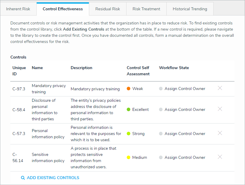 - Click Add next to each appropriate control to add it to the risk.