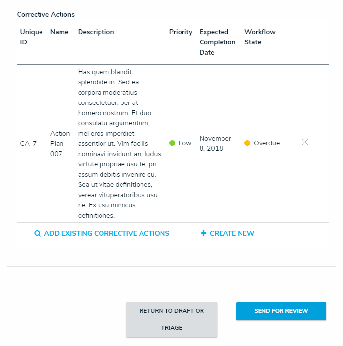 To create a new Issue from scratch, click + Create New and fill in the required fields. Read more here: Review a Corrective Action.