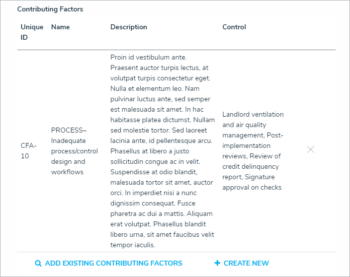In the Contributing Factors table, click Add Existing Contributing Factors, type its name in the search bar, then click Add.