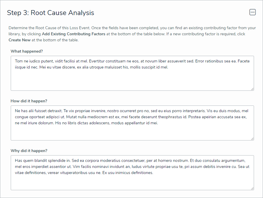 Enter an explanation for the Loss Event in the What happened? How did it happen? and Why did it happen? fields.