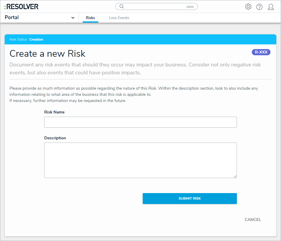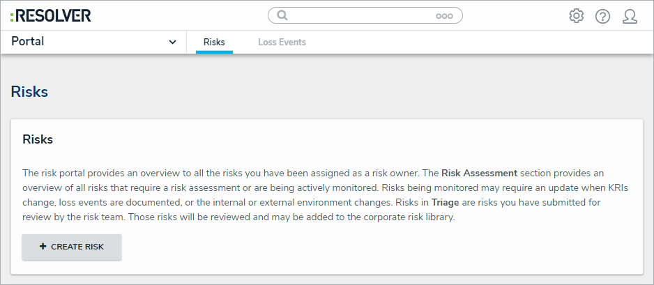 Click the dropdown in the nav bar > Portal to open the Risks activity.
