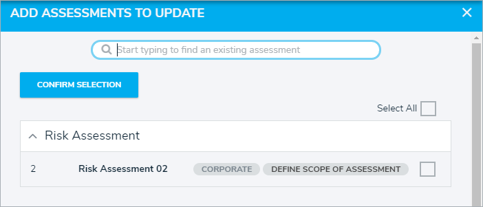 Either check the box next to each relevant assessment or check the box next to Select All to select all displayed assessments.