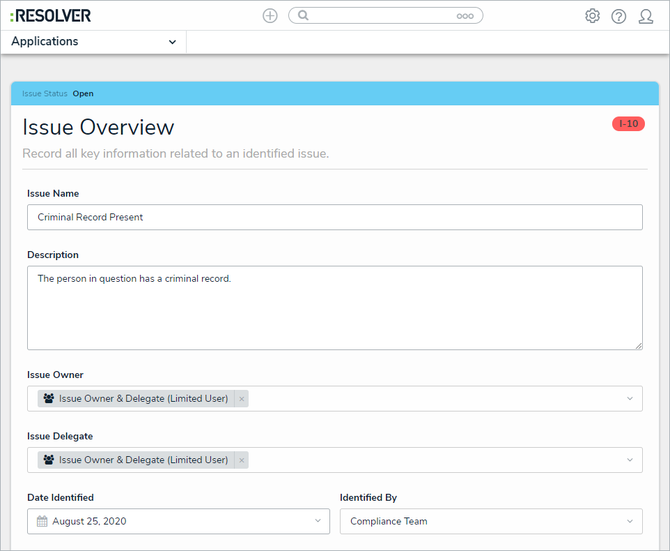 - Issue Delegate: Begin typing usernames to display a list of available options, then select the user who will be responsible for this issue in the event the issue owner is unavailable.