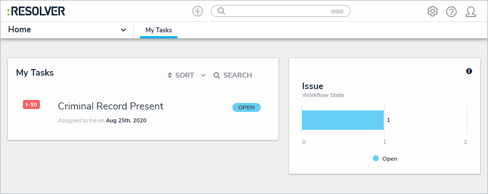 Log into an account that's been added to the Issue Owner & Delegate user group to display the My Tasks page.