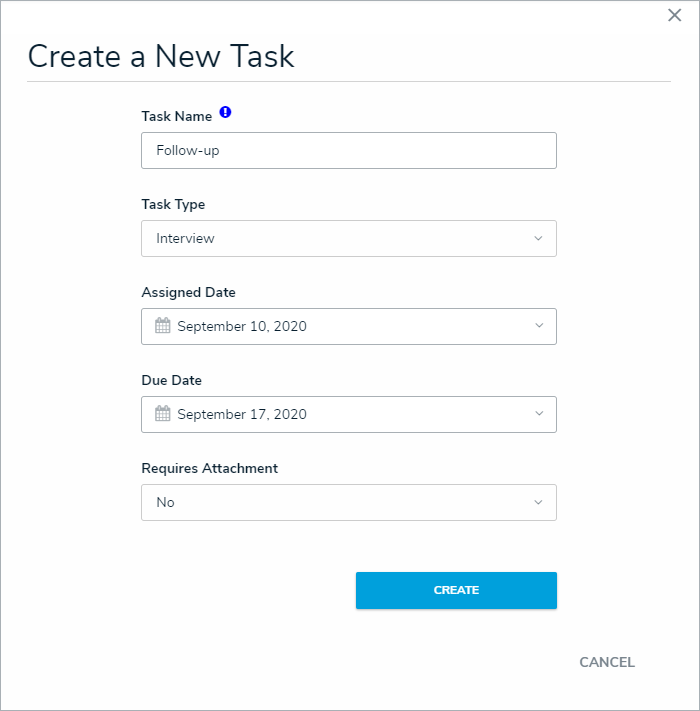 To add a new task, click the + icon at the bottom-right of the table, enter the required details, then click Create to save your changes.
