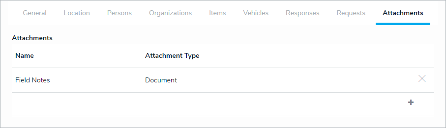 To add an attachment, click the + icon at the bottom-right of the table, upload the file and provide the required details, then click Create to save your changes. Some file types are not supported. See the Restricted Attachment File Types article for more information.