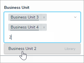 Additional business units can be added to the record by clicking the Business Unit field, typing the name of the business unit, then clicking a search result to select it. To remove a business unit, click the x icon beside its name in the field.