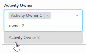 If needed, you can assign multiple activity owners in the Activity Owner field. Doing so will grant those additional owner's full access to the object. To assign more owners, click the Activity Owner field, begin typing the name of the user you wish to add, then click to select from the results.