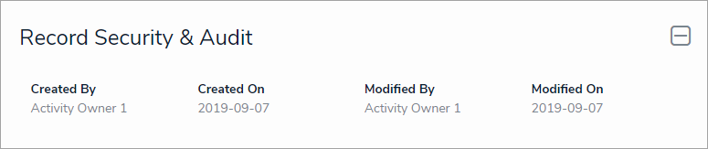 This section displays the name of the user(s) who created the activity and last modified it, as well as the date it was created and last modified. These properties are read-only.