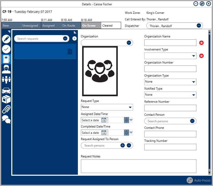 - Select how the organization was involved in the dispatch from the Involvement Type dropdown.