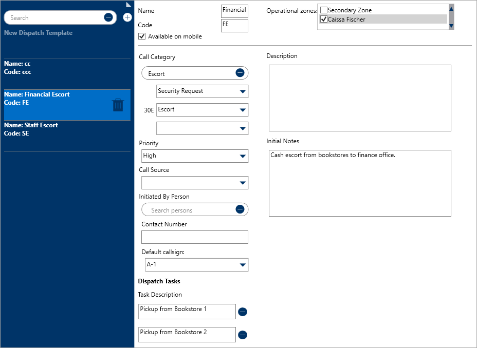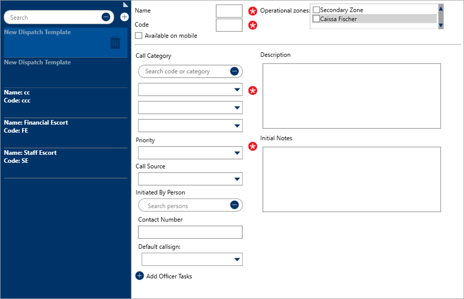 Optional: Select the Available on mobile checkbox if officers will use this template to create new dispatches via the Officer Mobile app.