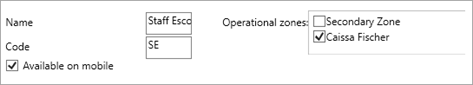 The Name, Operational zones, Code, and Available on mobile fields.