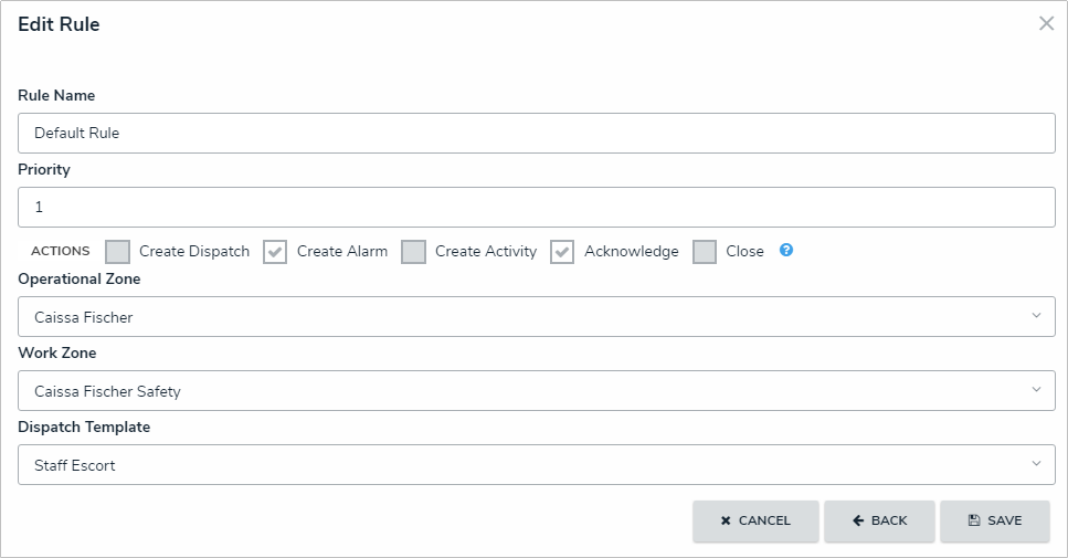 As templates are required for rules that create new dispatches or alarms, it’s recommended that you create templates that identify the dispatches were created from Connect (e.g. a template with a description or initial note that states “This request is from Connect”) to help keep dispatchers organized.