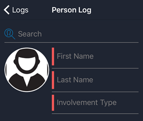 Tap the Search field to locate and select an existing person record saved in Command Center/Dispatch;