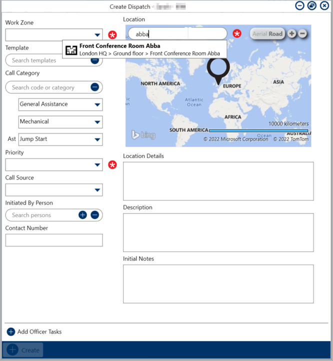 icon appears in this column, the officer’s last known location is a saved location in the Dispatch app. Clicking this icon opens a map focused on the officer’s location. Indoor locations can also be searched when setting the Officer’s current location, or in the Create Dispatch panel.