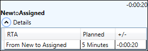 icon will reveal the RTA Details window. In this window, the RTA column displays the RTA criteria, Planned indicates the time allowed, and the +/- column indicates the time left or how much time has passed since the RTA expired. If no RTA has been created for the dispatch, this column will be blank.