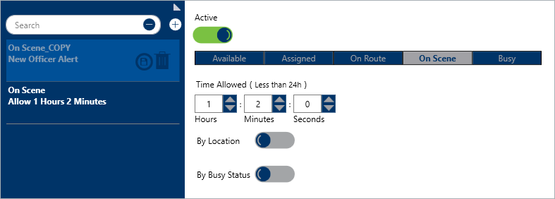 Administrators can create duplicates of existing officer alerts. These duplicates include the status, time limit, location, and busy status settings of the original, which can be adjusted as required.